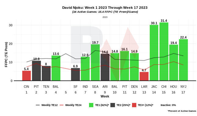 Njoku - TE5, 2nd best pass-catcher on his team and 100% healthy unlike the #1 option. Houston is 27th against opposing TEs. Unlike Kelce, Njoku arrow is up.