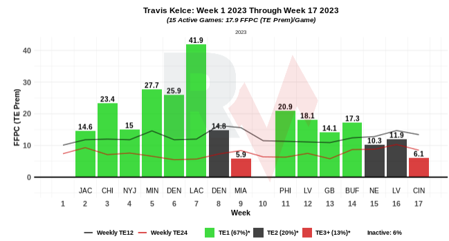 Kelce - TE2, best pass-catcher on his team. Miami is 26th against opposing TEs. Issue is like Diggs he did his best work in the first-half of the year.